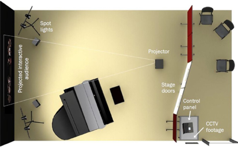 Williamon explains that having this backstage area, as well as a backstage manager and CCTV footage of the simulated audience, is integral to building the illusion. “It's all part of the setup to get people in that performance frame of mind.”