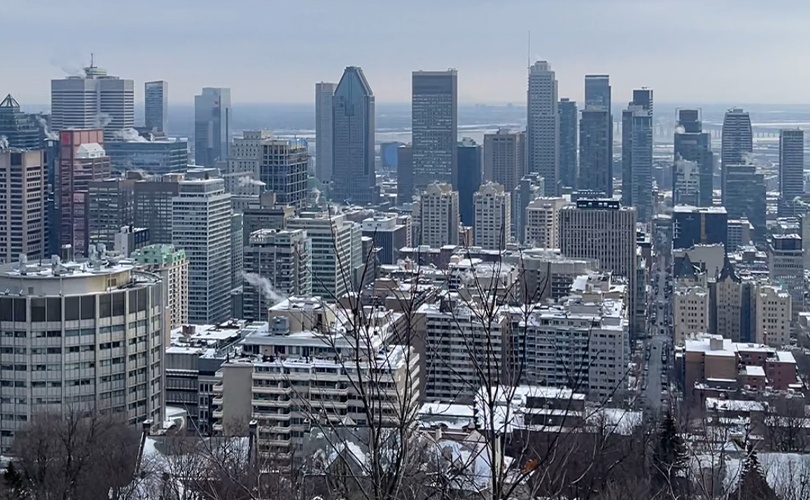 View of the Montreal skyline from the Mount Royal lookout in early February.